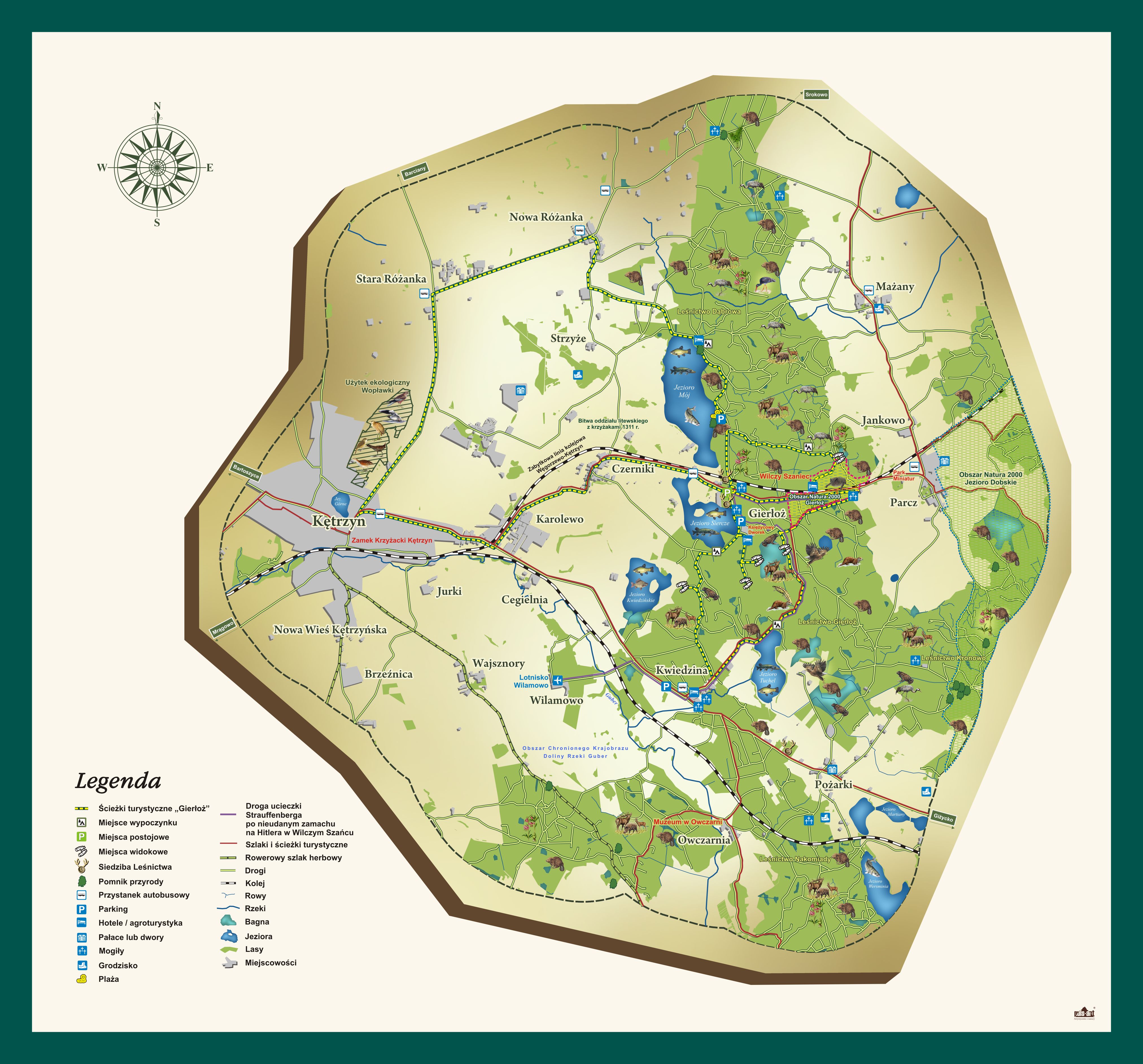 Wyznaczenie edukacyjnych tras turystycznych w okolicach Wilczego Szańca w Gierłoży powstało z myślą o poszerzeniu świadomości przyrodniczej, historycznej i kulturowej odwiedzających lasy Nadleśnictwa Srokowo.